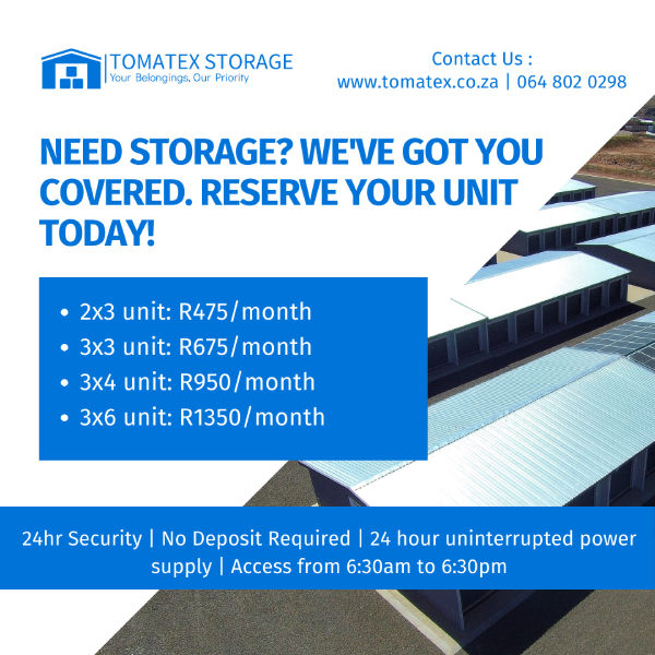Contact us today to reserve your storage unit and discover the Tomatex difference. Your belongings deserve the best storage solution available, and we’re here to deliver it.